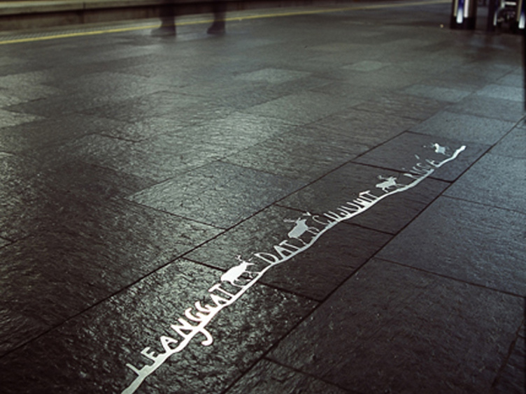 "Alexis" i avgangshallen. Serien "Alexis" består av seks skulpturer i rustfritt stål plassert i avgangshallen, ankomsthallen og på togstasjonen.